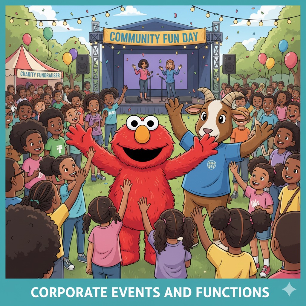 We specialise in elevating all types of gatherings, from corporate family days and school fetes to community galas and charity fundraisers. Whether you need a single character to add flair to a stage presentation or multiple mascots to roam and entertain hundreds of guests, we scale our service to match the scope of your event. Our mascots are professional, interactive and trained to engage diverse crowds, ensuring a lively atmosphere throughout your function.
